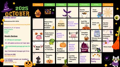 Enrichments are always available with new festivities happening each month. View Calendar to learn about the Halloween Party