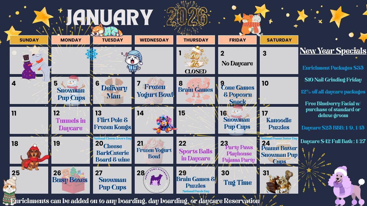 Our January Events & Enrichment calendar has been posted! See what fun filled days we have planned for your Partier(s) during the month.